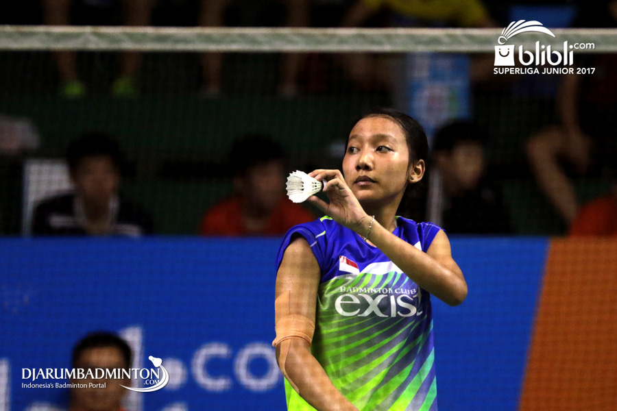 Serena Kani (Djarum) Berpose Saat Peregangan Usai Bertanding