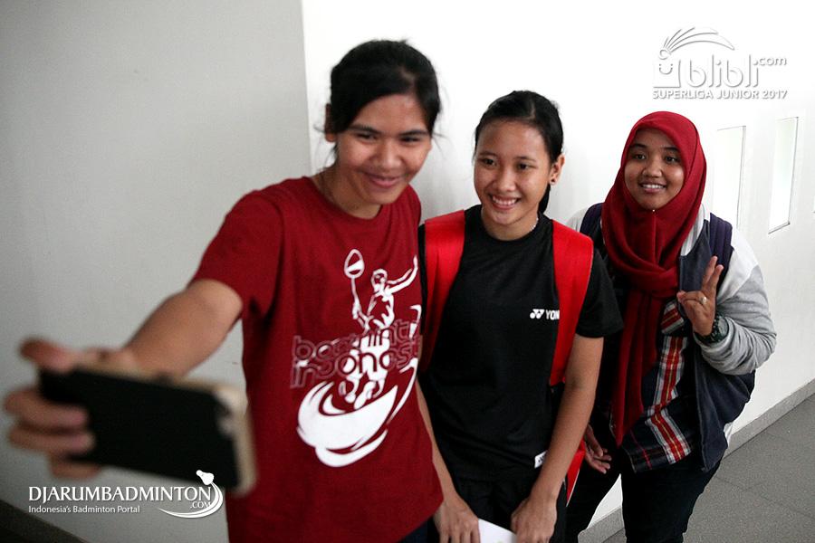 Pitha Haningtyas Mentari (Jaya Raya Jakarta) Selfie Bersama Dua Penggemarnya