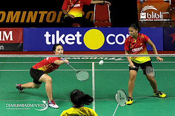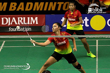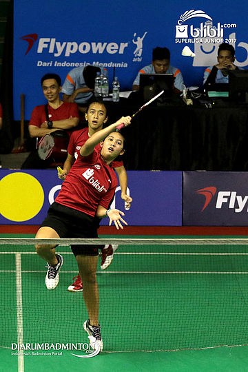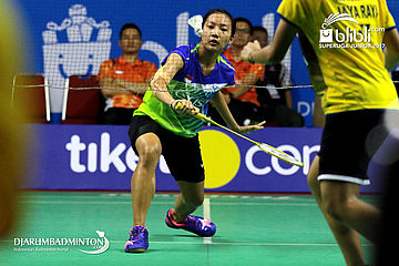 Febriana Dwipuji Kusuma/Ribka Sugiarto (Djarum) Mengembalikan Shuttlecock
