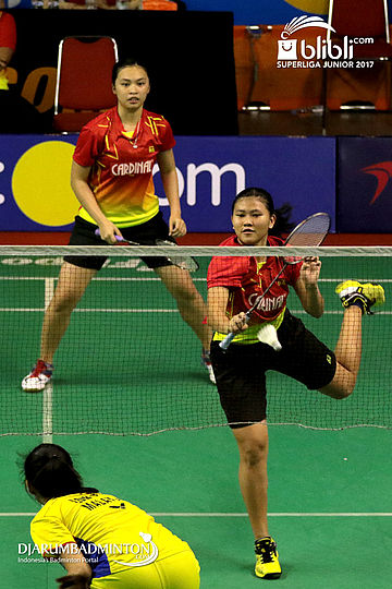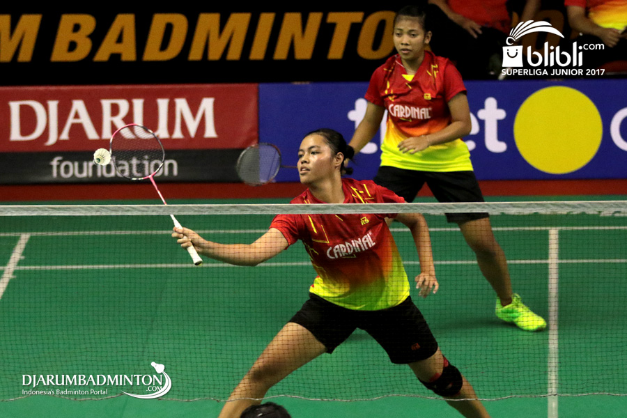 Annisya Widya Permatasari/Elvira Arumningtyas Mayasari (Mutiara Cardinal) Mengembalikan Shuttlecock