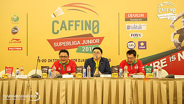 Para narasumber saat Press Conerence Caffino Superliga Junior 2019