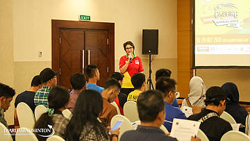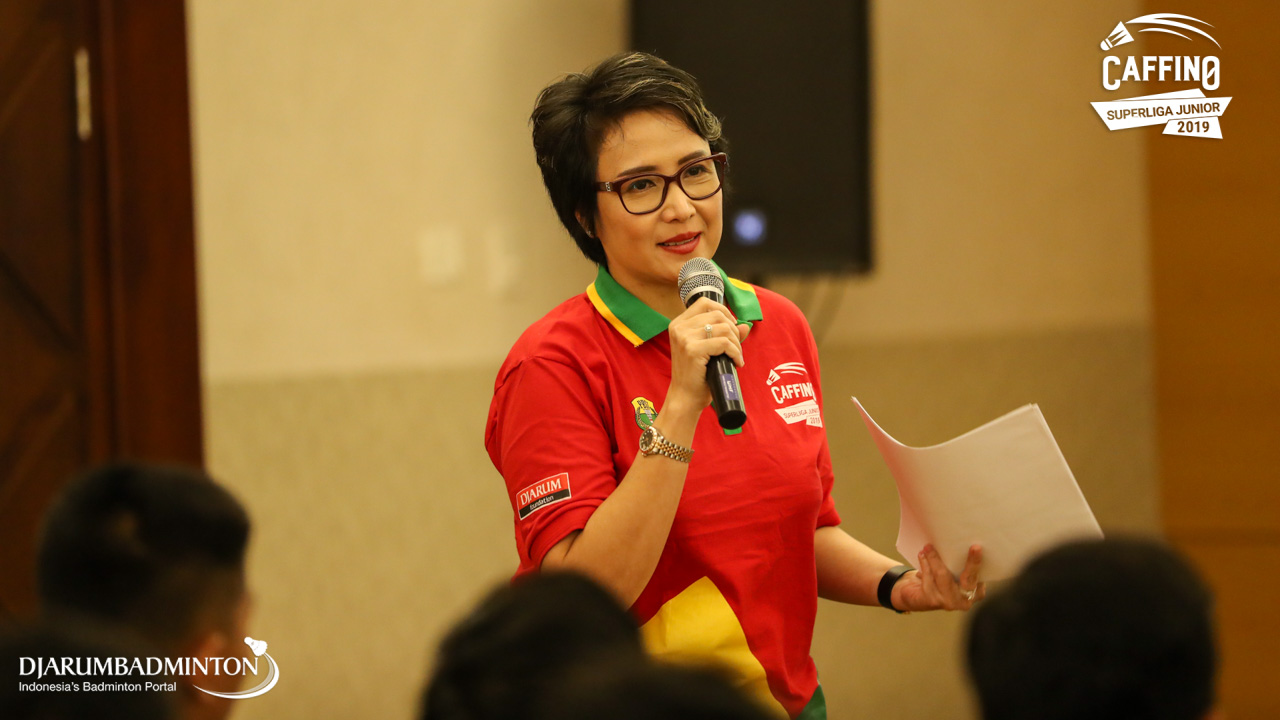 Yuni Kartika di saat Press Conerence Caffino Superliga Junior 2019