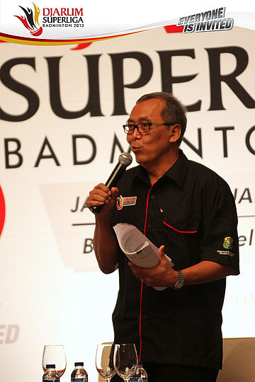 Direktur Superliga Yoppy Rosimin pada konferensi pers Djarum Superliga Badminton 2013, Selasa, (29/1)