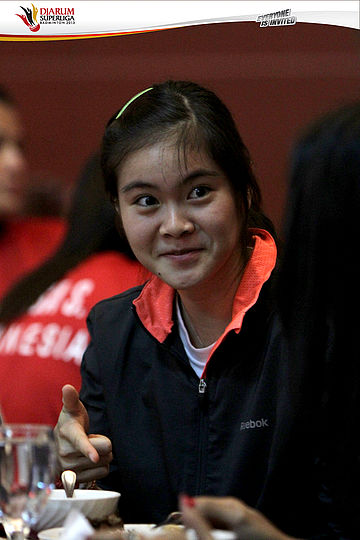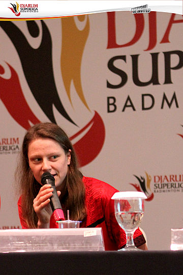 Juliane Schenk (PB Djarum) saat menjawab pertanyaan dari wartawan.
