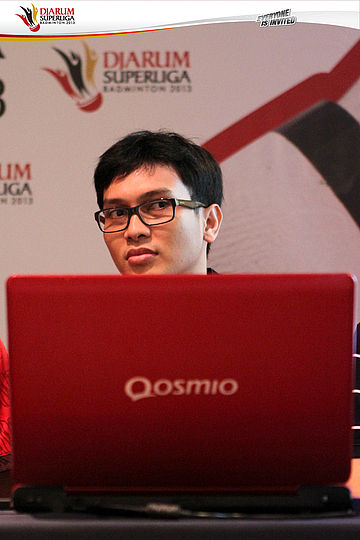 Mohammad Ahsan (PB Djarum) saat menyimak pertanyaan dari wartawan.