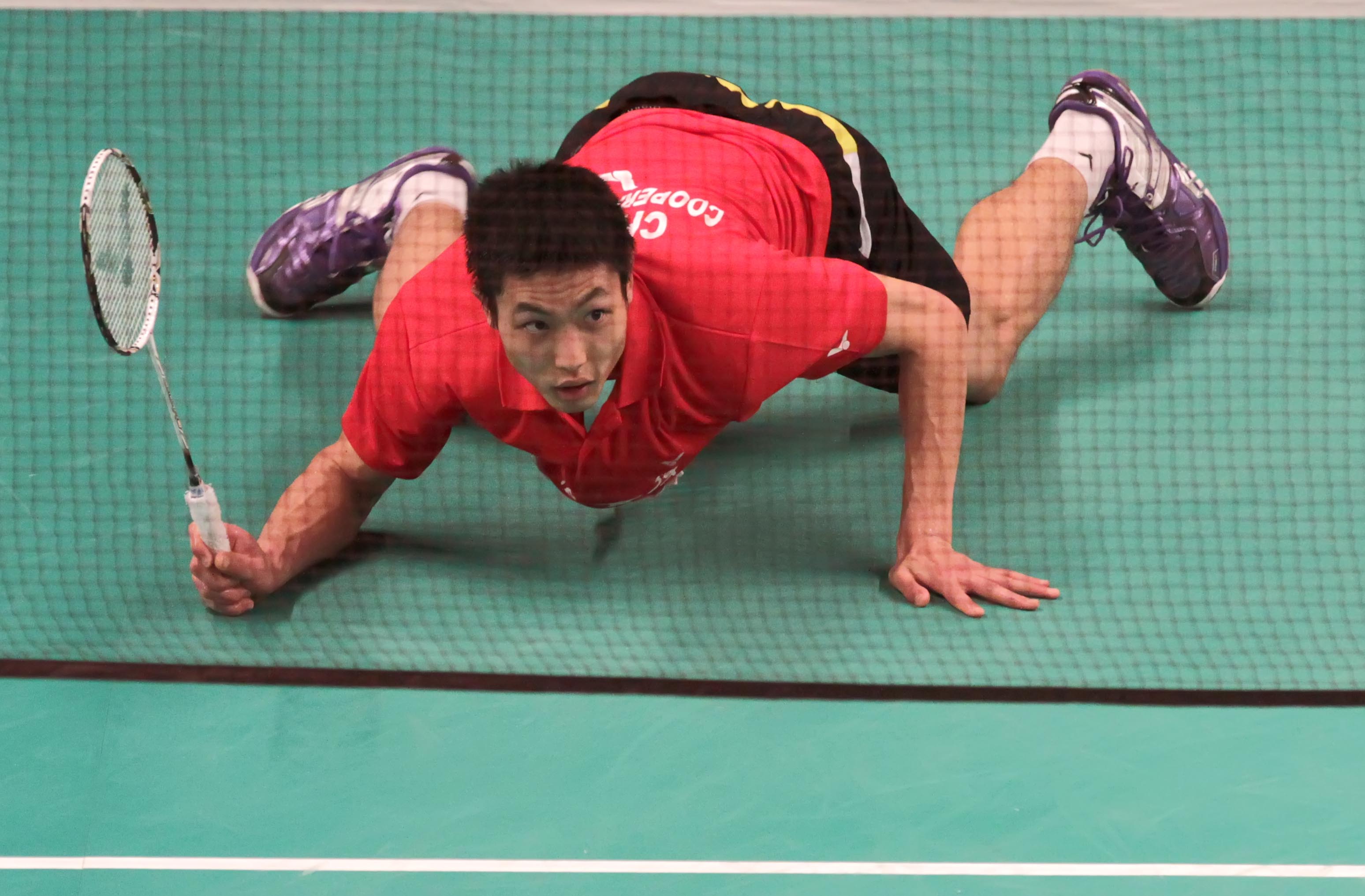 Aksi Chou Tien Chen saat mengembalikan shuttlecock ke kubu lawan