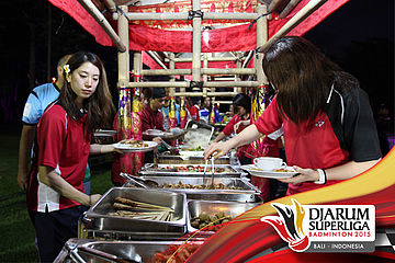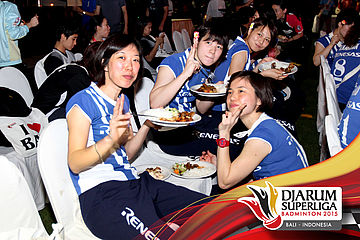 Sejumlah pemain Renesas Jepang saat menikmati santap malam dalam acara Gala Dinner.
