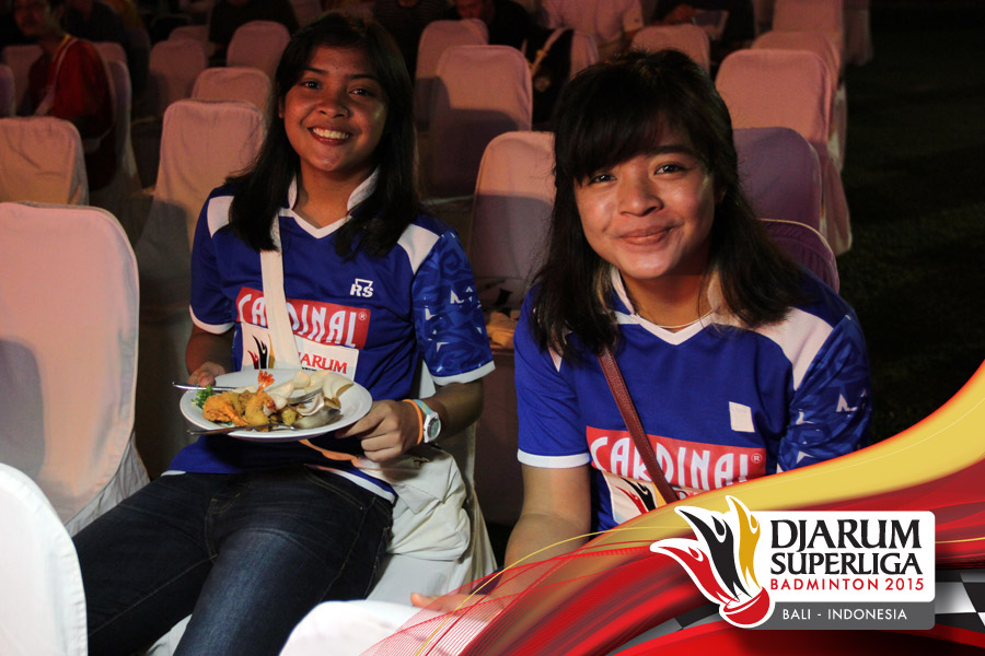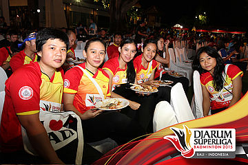 Para pemain Jaya Raya Suryanaga putri saat menikmati santap malam dalam acara Gala Dinner.