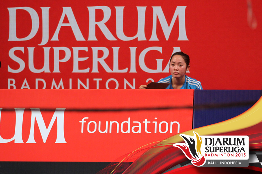 Gebby Ristiyani (Mutiara Cardinal) saat menunggu giliran untuk berlatih.