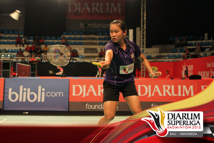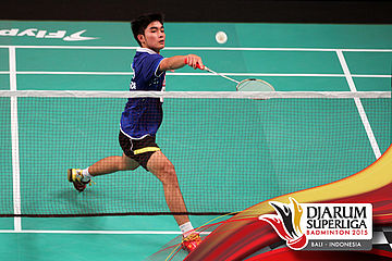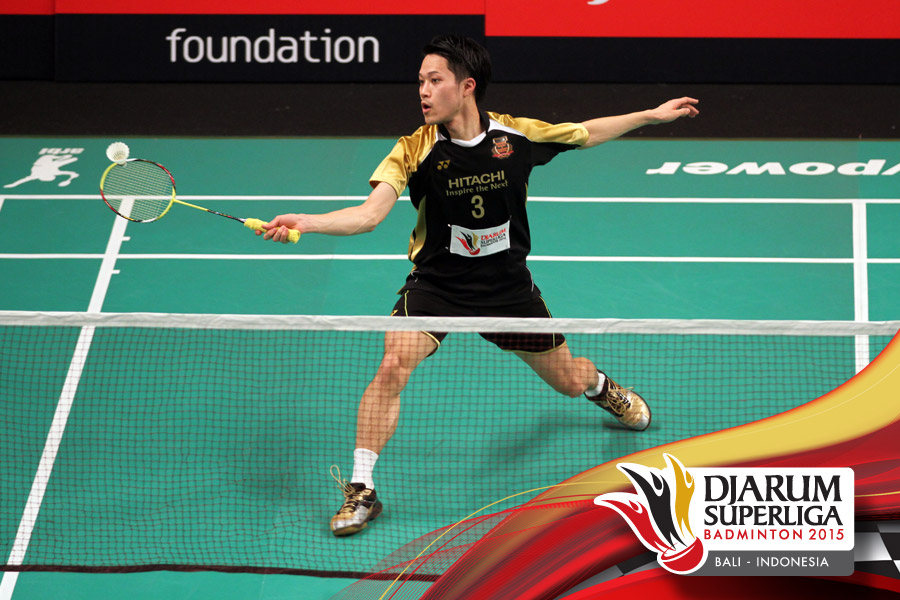 Ruselli Hartawan (Jaya Raya New Star) mengembalikan shuttlecock ke arah Kana Ito (Renesas Jepang).