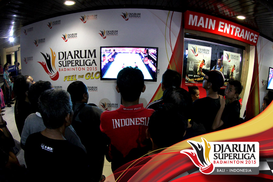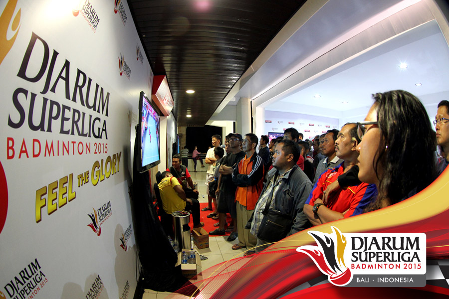 Ratusan pengunjung melakukan nonton bareng akibat membludaknya jumlah penonton yang memenuhi GOR Lila Bhuana.
