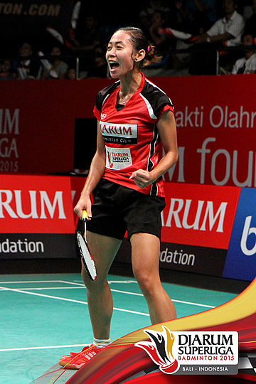 Selebrasi Sung Ji Hyun (Djarum Kudus) setelah berhasil mengalahkan Kusunose Yuka (Hokuto Bank Jepang).
