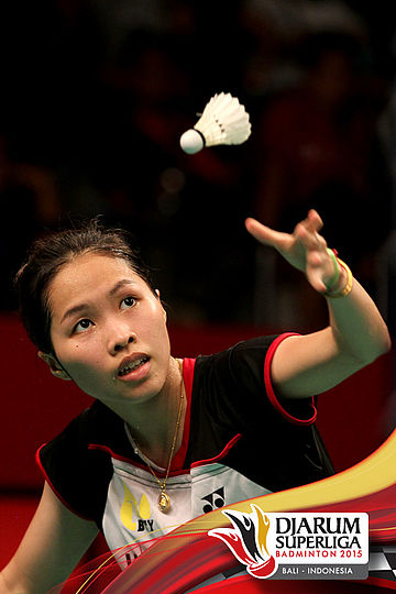 Kana Ito (Renesas Jepang) mengembalikan shuttlecock ke arah Ratchanok Intanon (Jaya Raya).