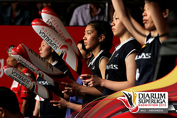 Juara putri Djarum Superliga 2015, Jaya Raya berpose bersama.