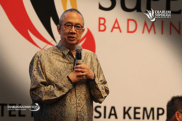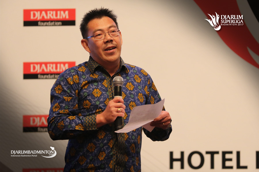 Bambang Roedyanto selaku Event Manager Djarum Superliga Badminton 2017 memberikan sambutan.