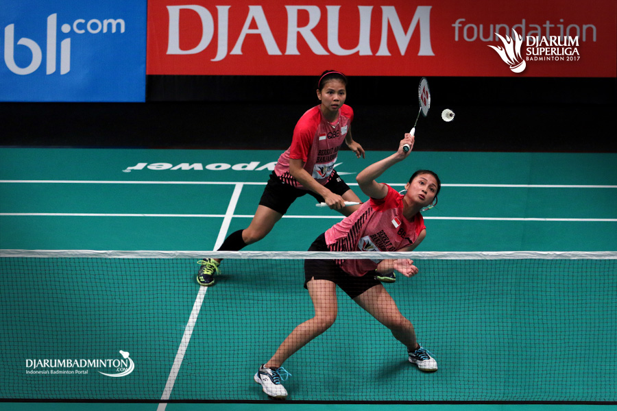 Greysia Polii/Rizki Amelia (Berkat Abadi) bersiap menyambut pengembalian.
