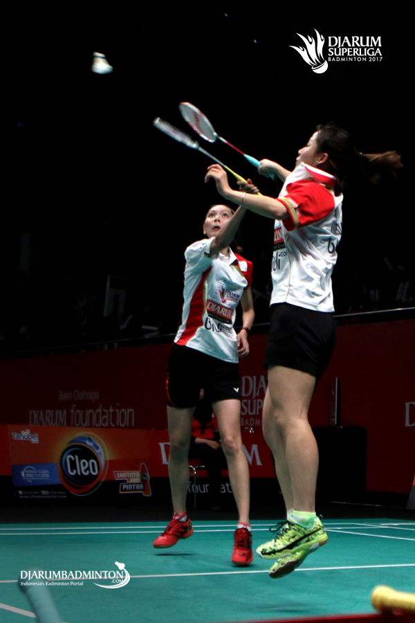 Gloria Emanuelle/Ma Jin (PB Djarum) saling berkoordinasi.