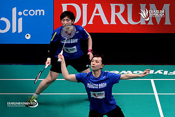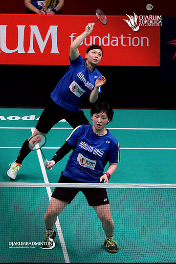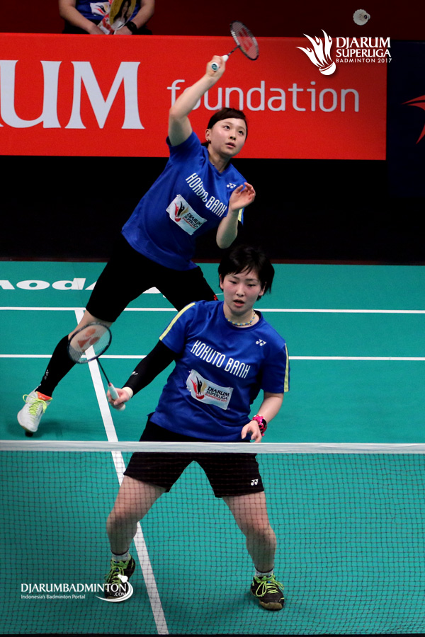 Uratani Natsumi/Murayama Yumi (Hokuto Bank Jepang) bersiap menyambut pengembalian.