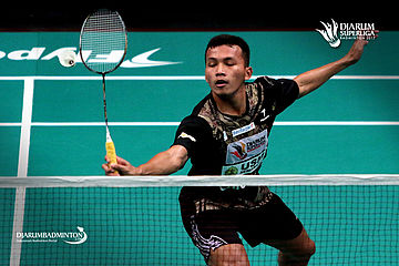 Reksy Aureza (USM Blibli.com) melepaskan serangan.