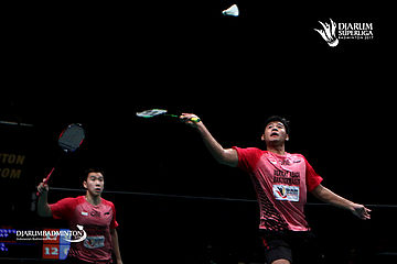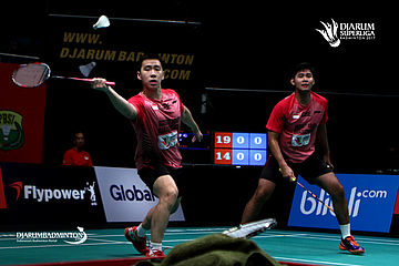 Angga Pratama/Marcus Fernaldi Gideon (PB Berkat Abadi) menyambut pengembalian.