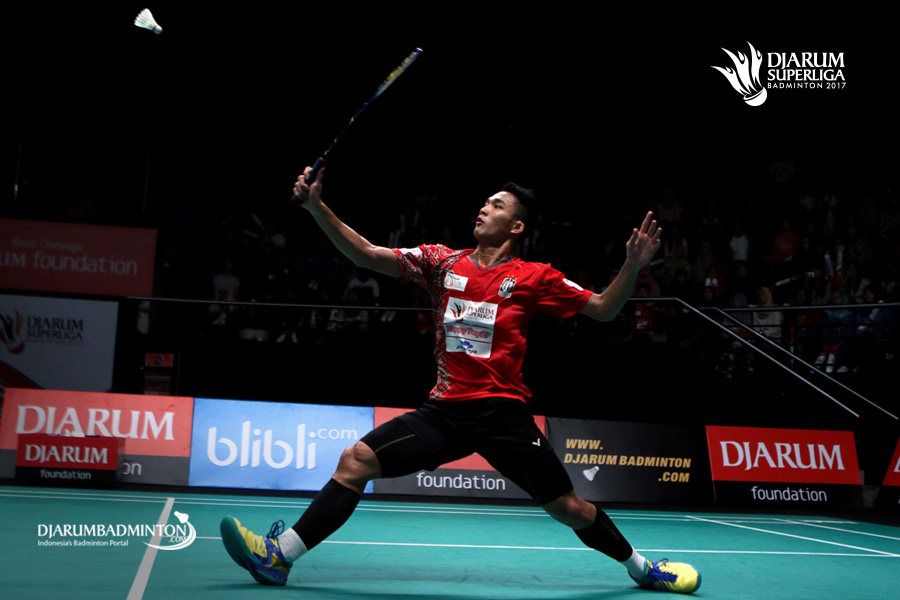 Jonatan Christie (PB Musica Champion) gagal menghadang serangan.