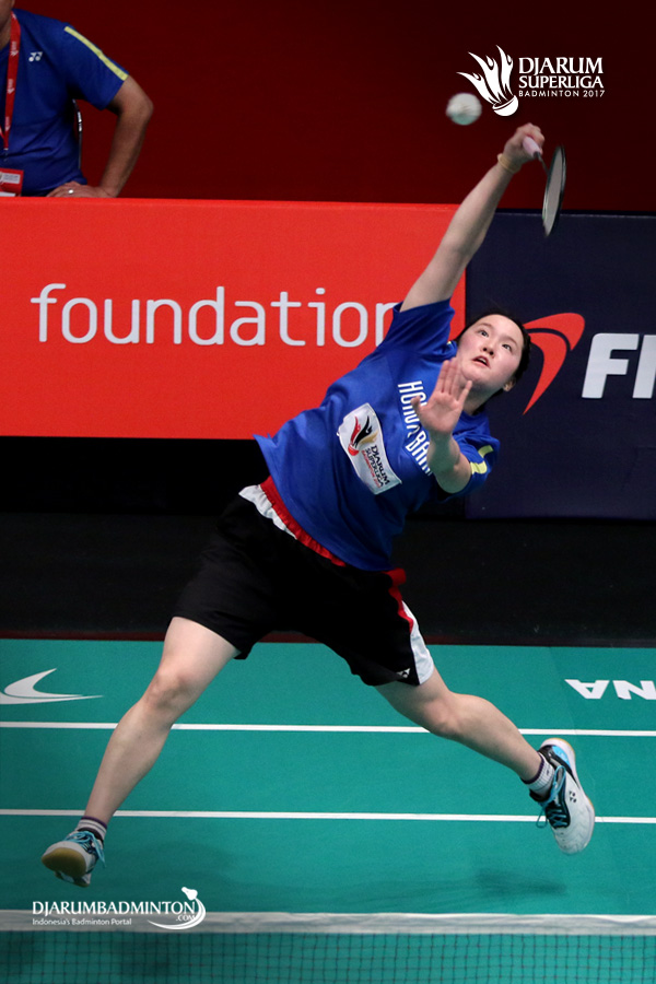 Nakamura Yuri (Hokuto Bank Jepang) melepaskan serangan.