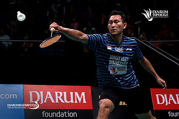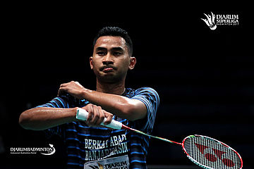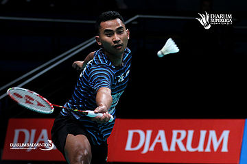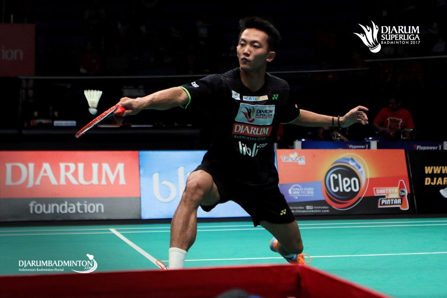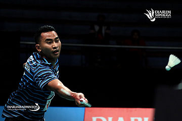 Ihsan Maulana Mustofa (PB Djarum) menyambut pengembalian.