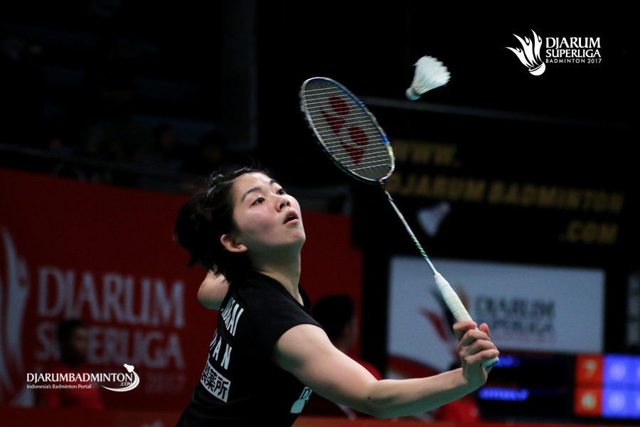 Miku Yasuda (PB Tjakrindo Masters) menyambut pengembalian.