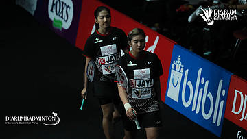 Jauza Fadhila Sugiarto/Virni Putri (Jaya Raya Jakarta) memasuki arena pertandingan