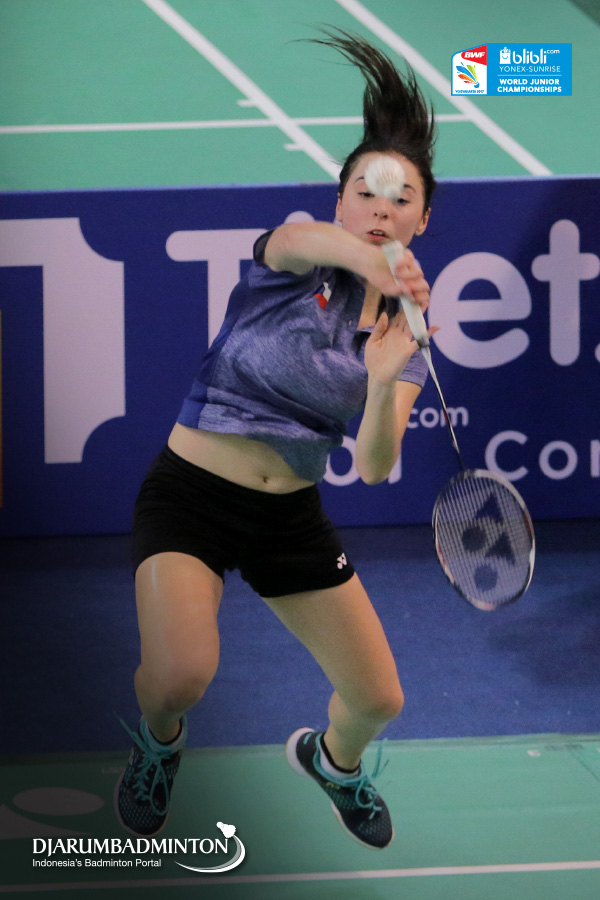 Clara Lassaux (Belgium) Mencoba Menggapai Shuttlecock
