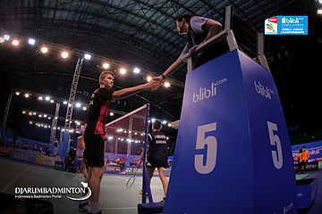 Wessel Van De Aar (Netherland) Bersalaman Dengan Umpire Susai Bertanding
