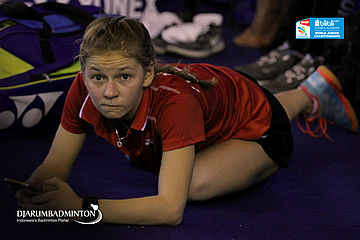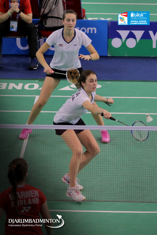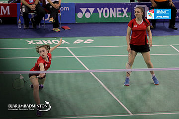 Annie Lado/Hope Warner (England) Berusaha Mengembalikan Shuttlecock