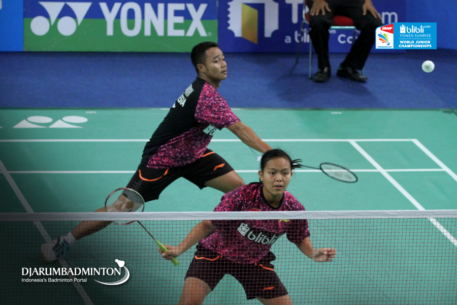 Rehan Naufal K/Siti Fadia S (Indonesia) Mengembalikan Shuttlecock