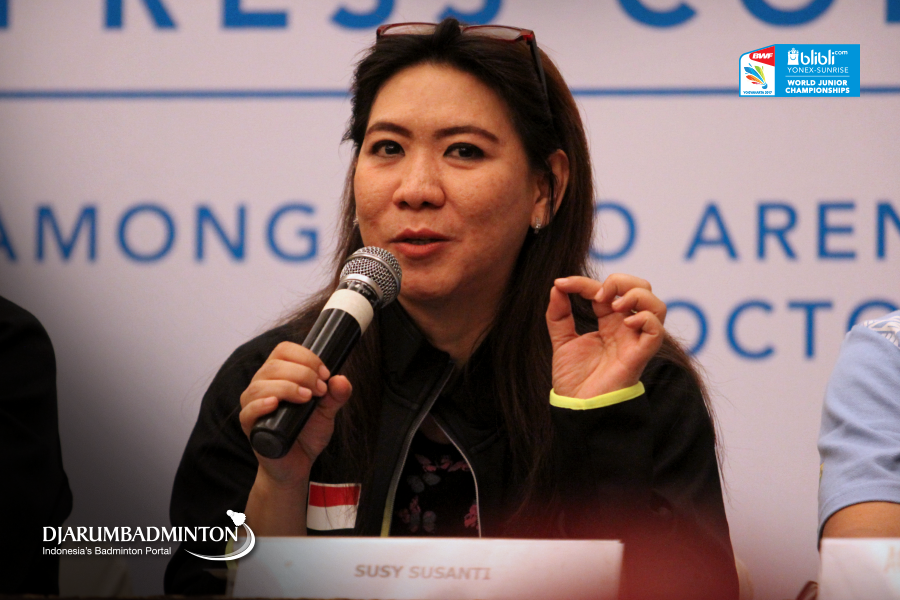 Susy Susanti (Manager Team WJC) Saat Menjawab Pertanyaan Wartawan