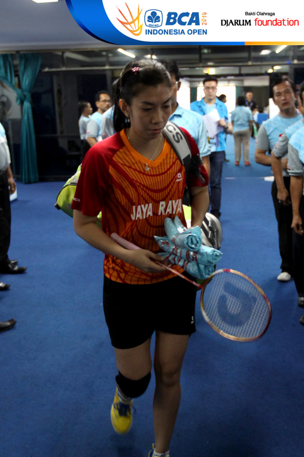 Adrianti Firdasari (Indonesia) bersiap memasuki lapangan pertandingan