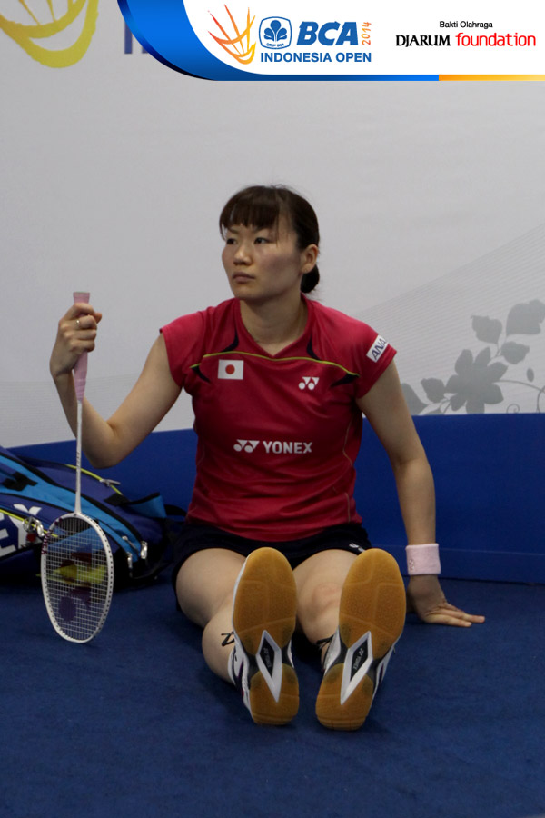 Mami Naito (Jepang) saat melakukan pemanasan sebelum bertanding