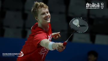 Anders ANTONSEN (Denmark) sedang melakukan latihan