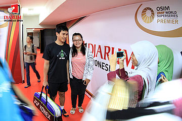 Beberapa pengunjung tak membuang kesempatan dengan mengajak salah satu pemain Indonesia, Mohamad Ahsan berfoto bersama.