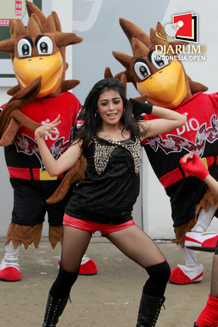 Penampilan salah satu modern dance bersama maskot DIO cukup menarik perhatian sejumlah pengunjung yang hadir di Istora Senayan.
