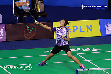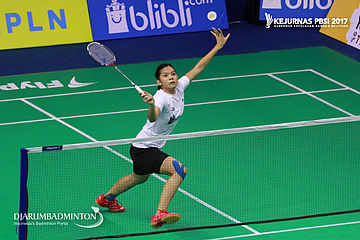 Bening Sri Rahayu (DKI Jakarta) Berusaha Menjangkau Shuttlecock