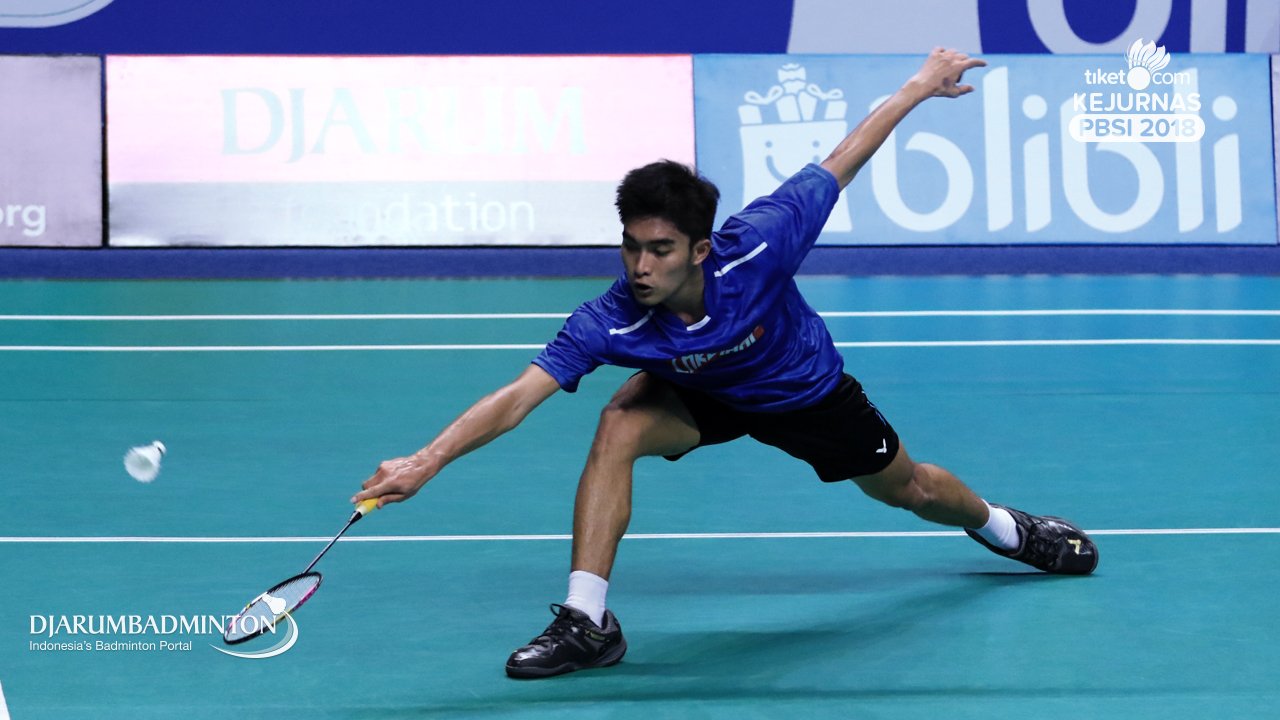 Panji Ahmad Maulana (Mutiara Cardinal Bandung) Berusaha menggapai shuttlecock
