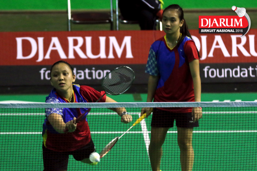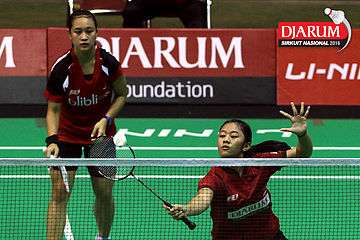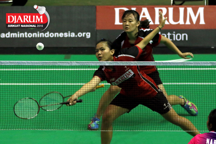 Febriana Dwipuji/Ribka Sugiarto (Djarum Kudus) menghadang serangan