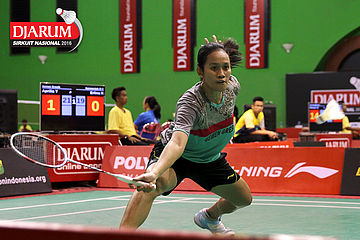Aprilia Yuswandari (Semen Gresik) Mengembalikan Shuttlecock.