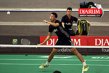 Akhmad Royyanda (Hi Qua Wijaya) mengembalikan shuttlecock