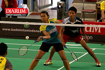 Daniel Cahyo/Indah Ramadhani (Berkat Abadi Banjarmasin) menyambut pengembalian