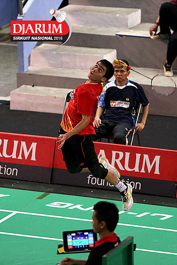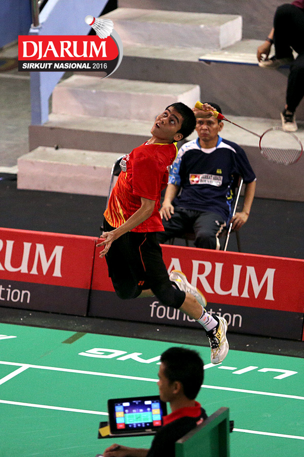 Devand Riefky/Desta (Jaya Raya) mengembalikan shuttlecock