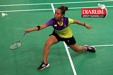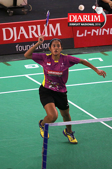 Elizabeth Purwaningtyas (SGS PLN) mengembalikan shuttlecock