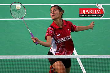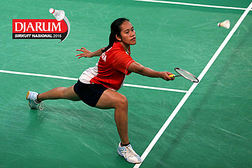 Aprillia Yuswandari (Semen Gresik) mengembalikan shuttlecock