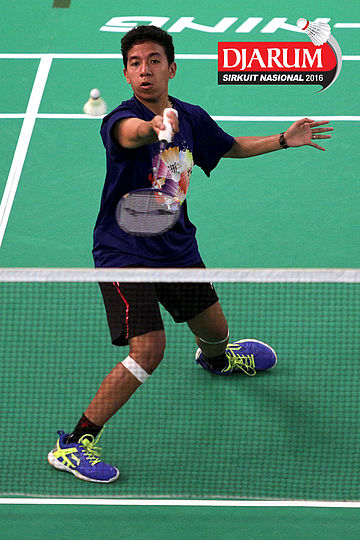 Irfan Fadhillah/Weni Anggraeni (Jaya Raya) bersiap menyambar pengembalian