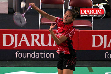Ana Rovita (Pertamina Fastron) mengembalikan shuttlecock